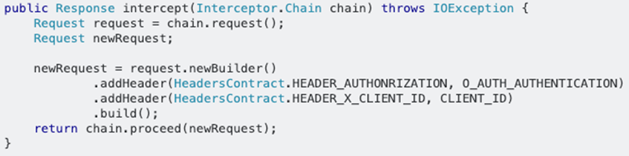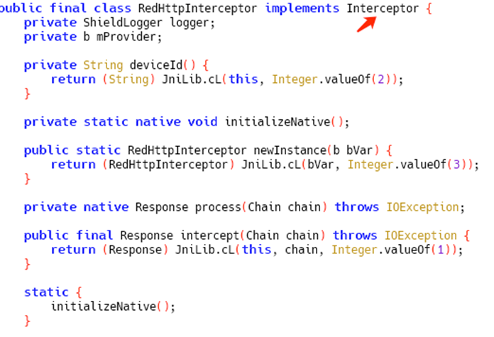 查阅Interceptor这个类的文档,里边最主要的方法就是intercept。那么可猜测shield是在这个RedHttpInterceptor中的intercept方法添加进headers的。