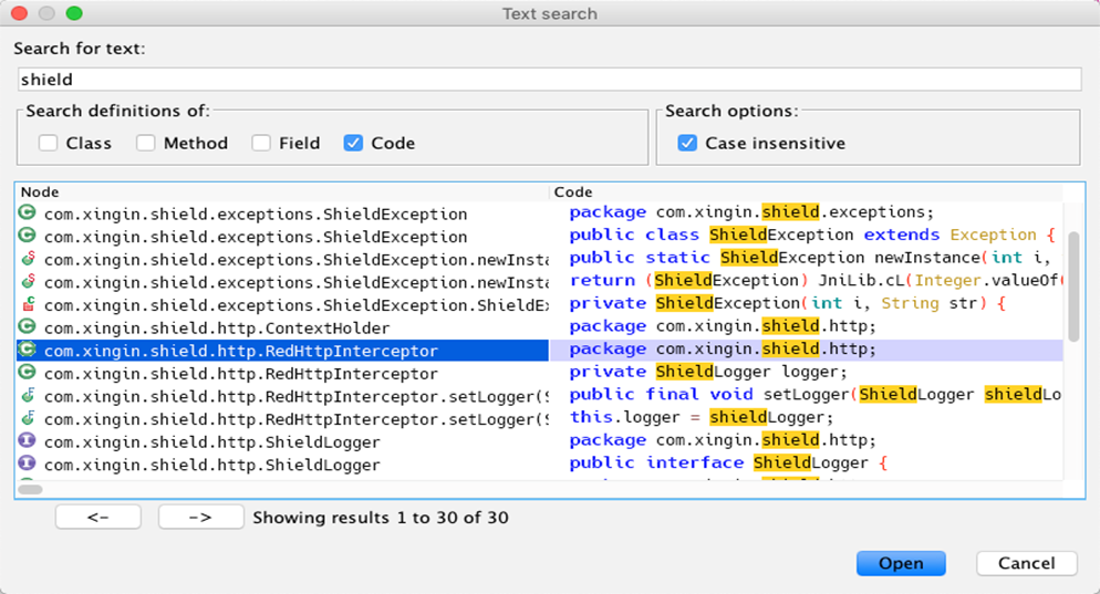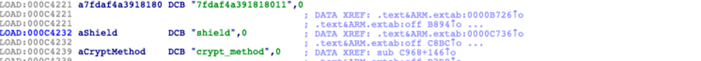 寻找s开头的字符串,发现了shield,点击跳转,最终找到调用的内部函数。