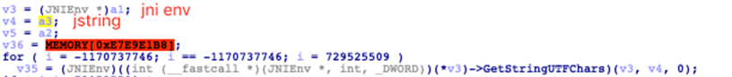 a3是JNI方法 GetStringUTFChars的参数,那么a3的类型必然为jstring