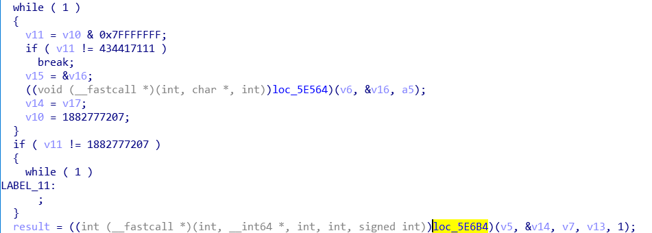 这里边只能看到一个sub_5E860,函数里主要调用了5E564,5E6B4。